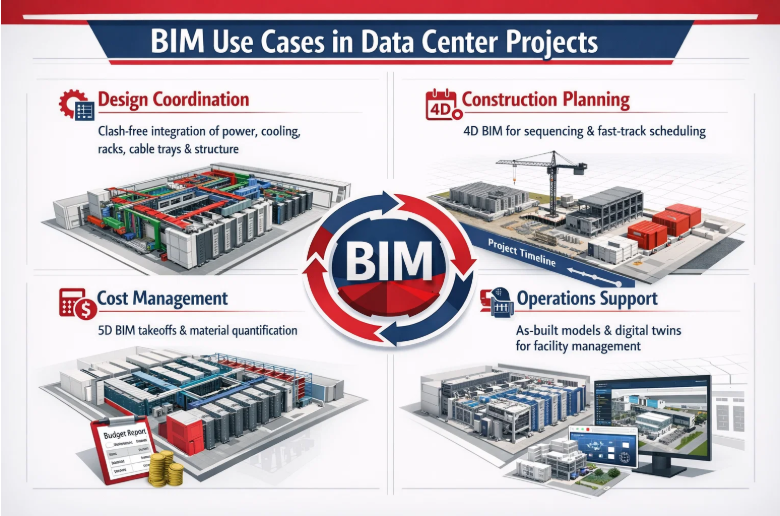 TopBIM provides end-to-end data center BIM services that support every phase of mission-critical facility delivery.